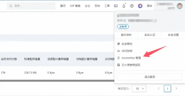 4、获取阿里云OSS的AccessKeyID 和 KeySecret