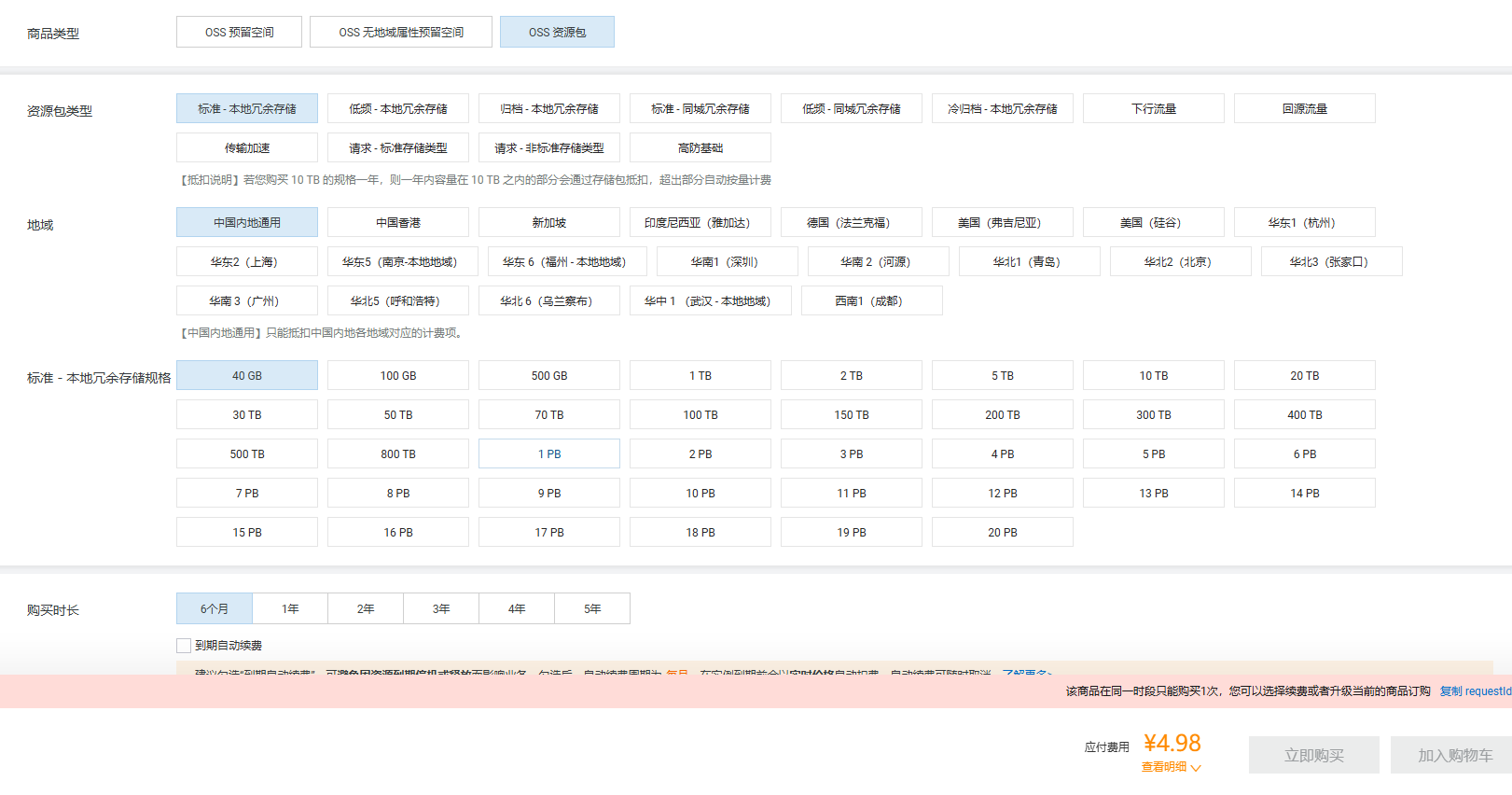 1、购买oss资源包