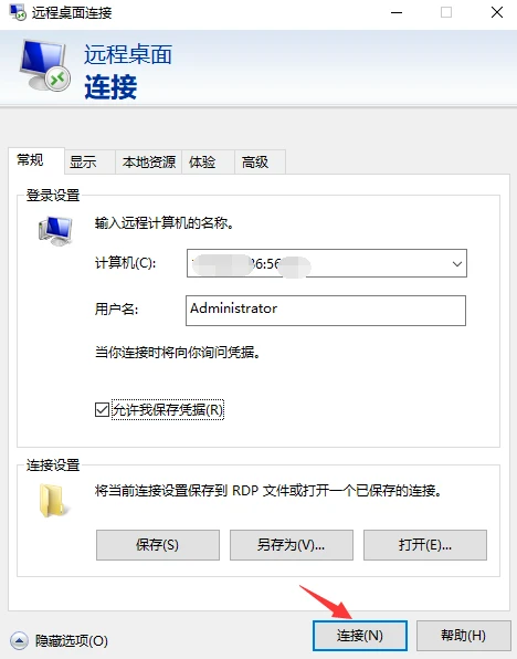 2、在远程连接的界面中,点击【显示选项】,在计算机中输入远程服务器的IP地址和远程端口(IP:端口)注意冒号要使用英文的,以及用户名,点击【连接】