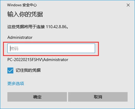 3、接着会提示输入密码,输入你的服务器密码即可。勾选【记住我的凭据】,以后再次远程就会有记录,不需要再次输入密码了。